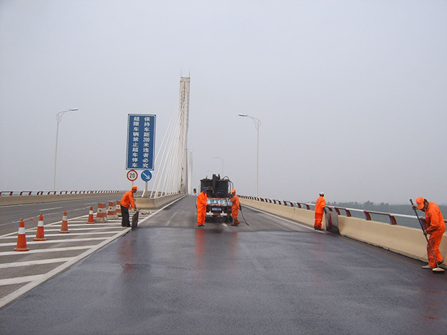 橋面防水施工的第二步是進(jìn)行涂刷涂料。這一步就真的到實(shí)際的防水處理了。首先,要對(duì)修復(fù)后的空洞、施工留下的縫隙等特殊位置進(jìn)行預(yù)先的涂刷,進(jìn)而加強(qiáng)這些部位的防水能力。其次,涂料要進(jìn)行多層的涂刷,從橋面的一邊開(kāi)始進(jìn)行整面的涂刷,涂刷完畢后再沿著與上一次涂刷垂直的方向進(jìn)行二次涂刷,每次涂刷都要在上一次涂刷凝固后進(jìn)行。